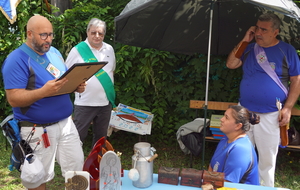 Notre Capitaine Thierry a alors remis à Nathalie son écharpe conformément à la tradition : Thierry a alors exposé son souhait de passer le relais dans cette charge de Capitaine à un autre Chevalier de la Compagnie. Valério COSTAS a ainsi présenté sa candidature et a été élu Capitaine.