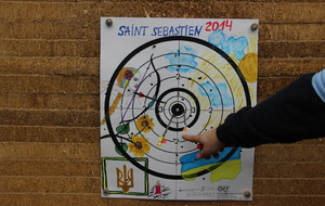 Ce dimanche 27 janvier, avait lieu la Saint Sébastien au terrain.16 archers dont trois débutants ont participé à ce tir, sous le regard de nombreux accompagnateurs. A l'issue des 3 flèches tirées par chaque archer sur la carte décorée par Iryna, Saint Sébastien 2013, Jérôme et Léo ont obtenu leur qualification pour le dernier tir grâce à deux belles flèches dans le noir.