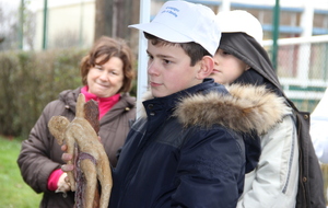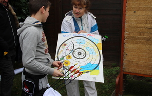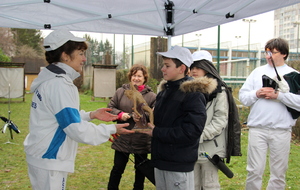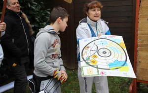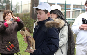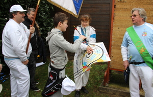 A l'issue de ce quatrième tir, Léo réalise une belle flèche, plus proche du centre que celle de Jérôme et devient ainsi SaintSébastien pour cette année. Il reçoit le trophée de Saint Sébastien réalisé par Sophie et le trophée de l'année.